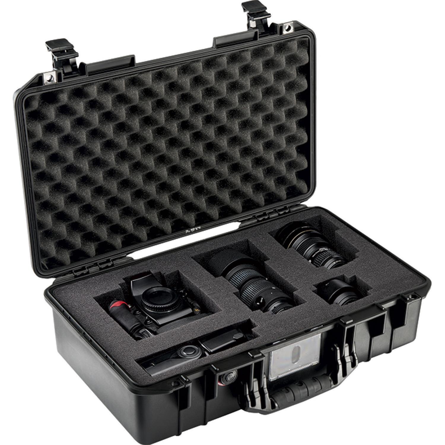 Stainless Steel hasp protectors Watertight O-ring gasket Includes one 3-piece Pick N Pluck foam set Rubber overmolded handles Removable Polycarbonate card holder with front or side placement Tough double-throw latches Automatic purge valve. 22″ D x 14″ W x 7.5″ H